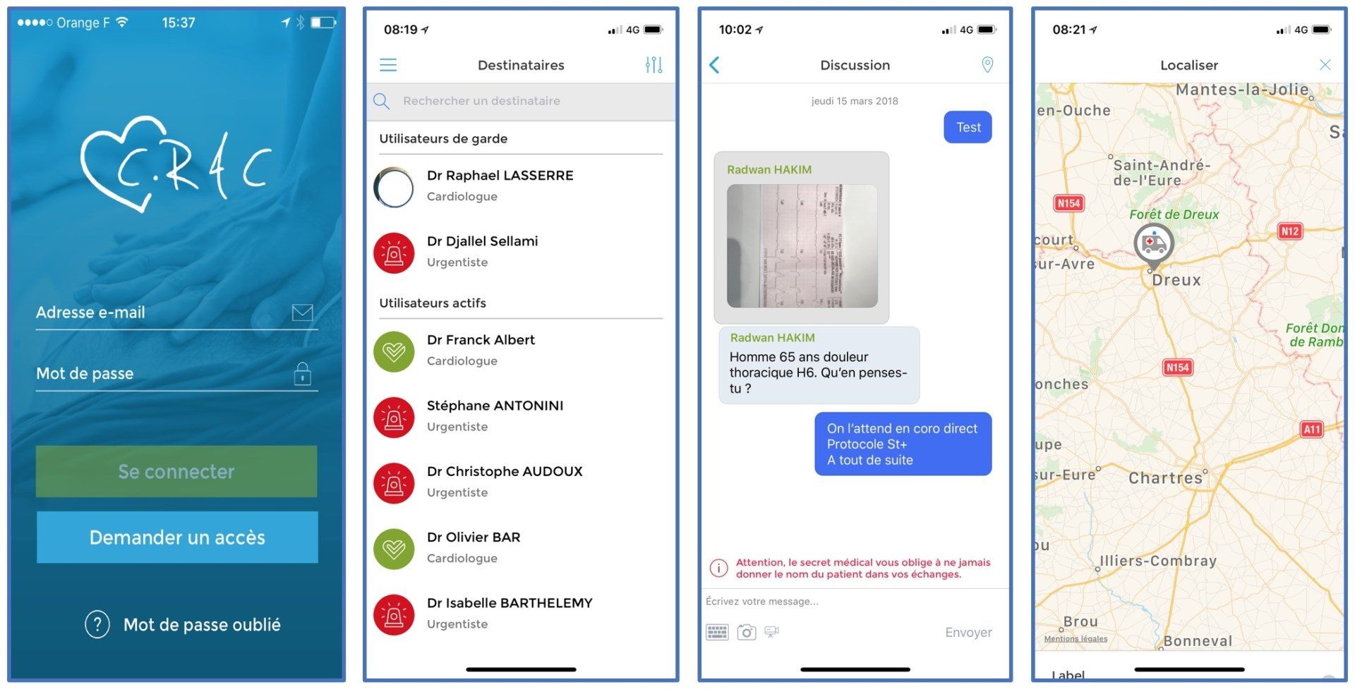 Cette application permet un échange direct entre médecins urgentistes et cardiologues dans le cadre de l'urgence coronaire, et ainsi de réduire les délais de prise en charge. Elle permet d'assurer un partage immédiat, actualisé, sécurisé et personnalisé d'informations (protocoles).